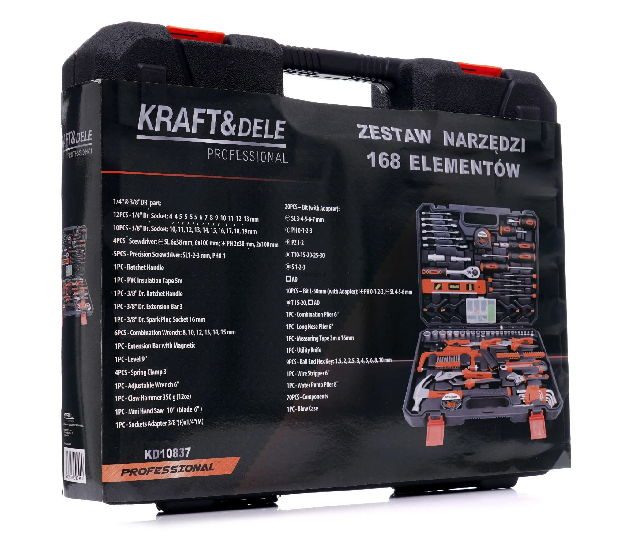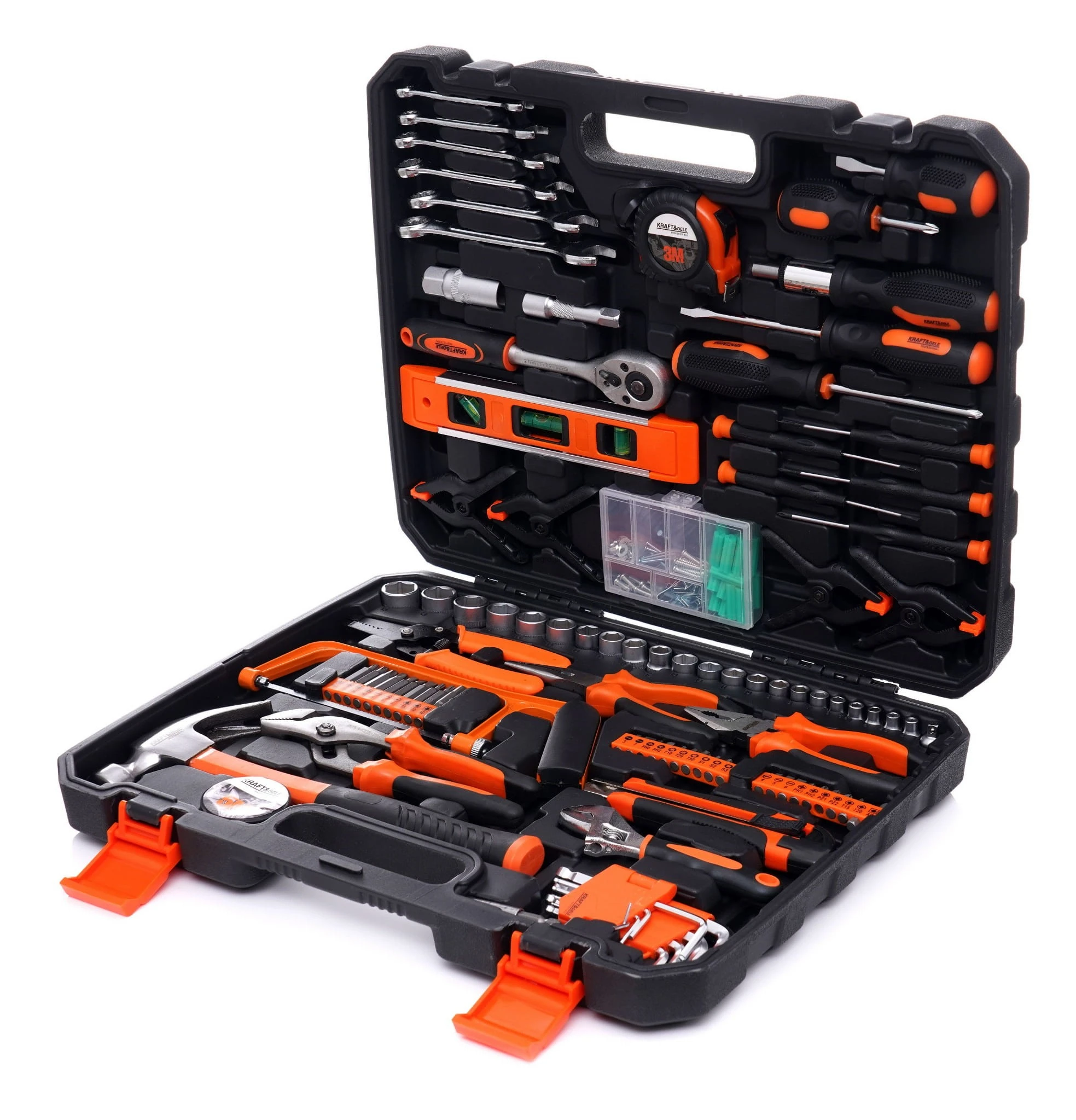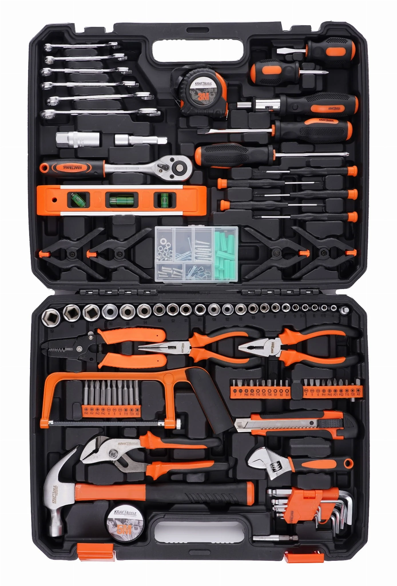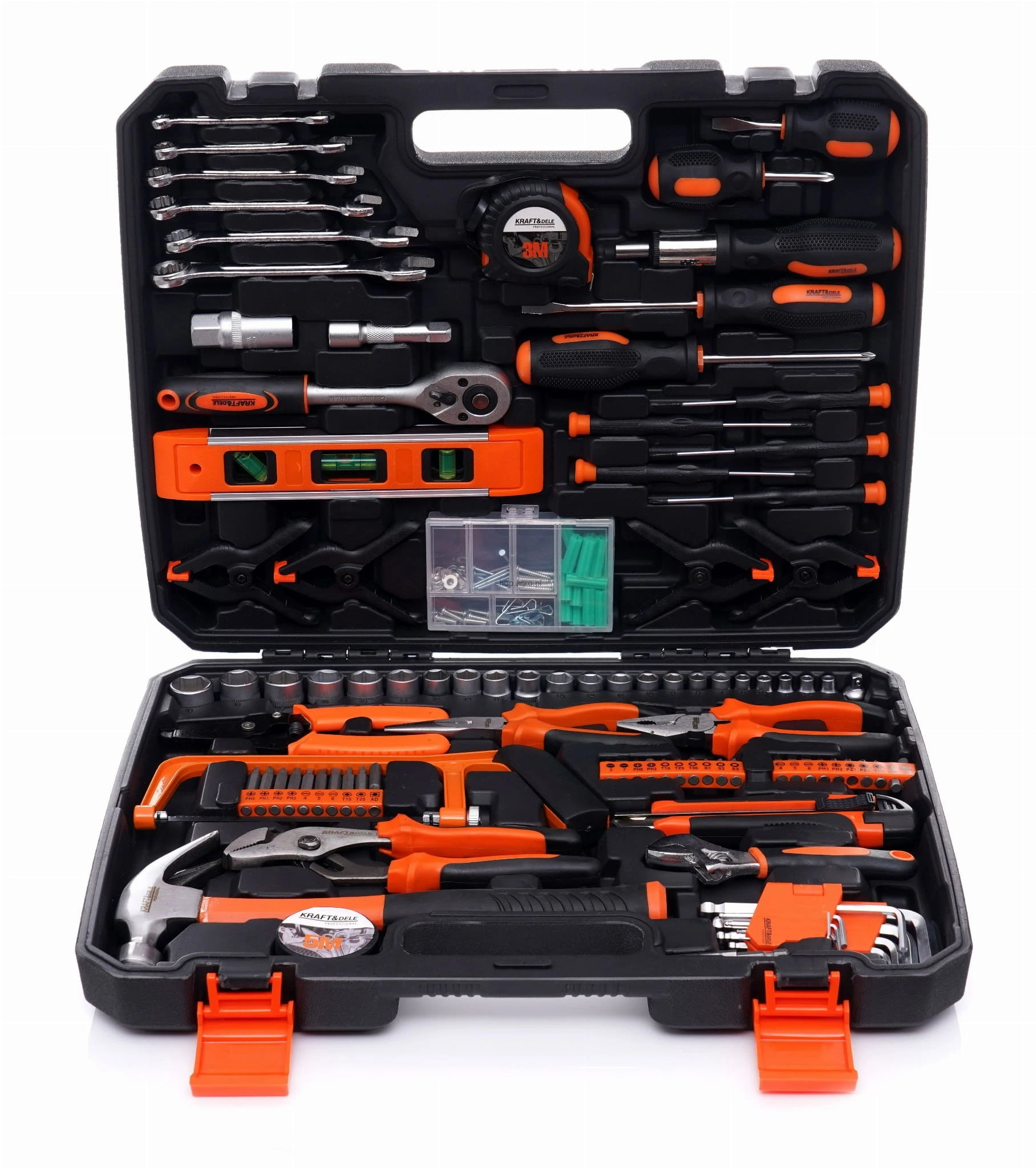 Niezwykle rozbudowany zestaw narzędzi marki Kraft&Dele o symbolu KD10837. Narzędzia cechuje solidne wykonanie, wytrzymałe materiały oraz poręczna walizka, w której każde narzędzie ma swoje miejsce.