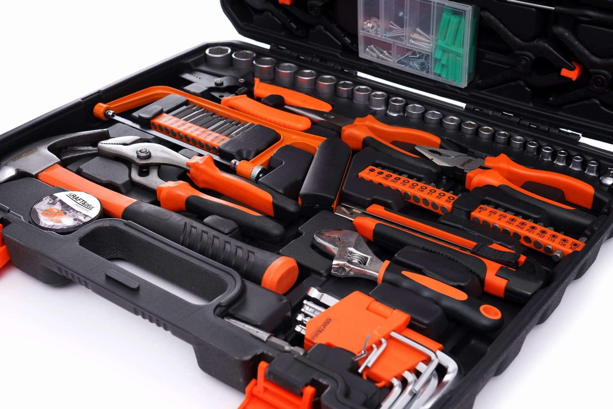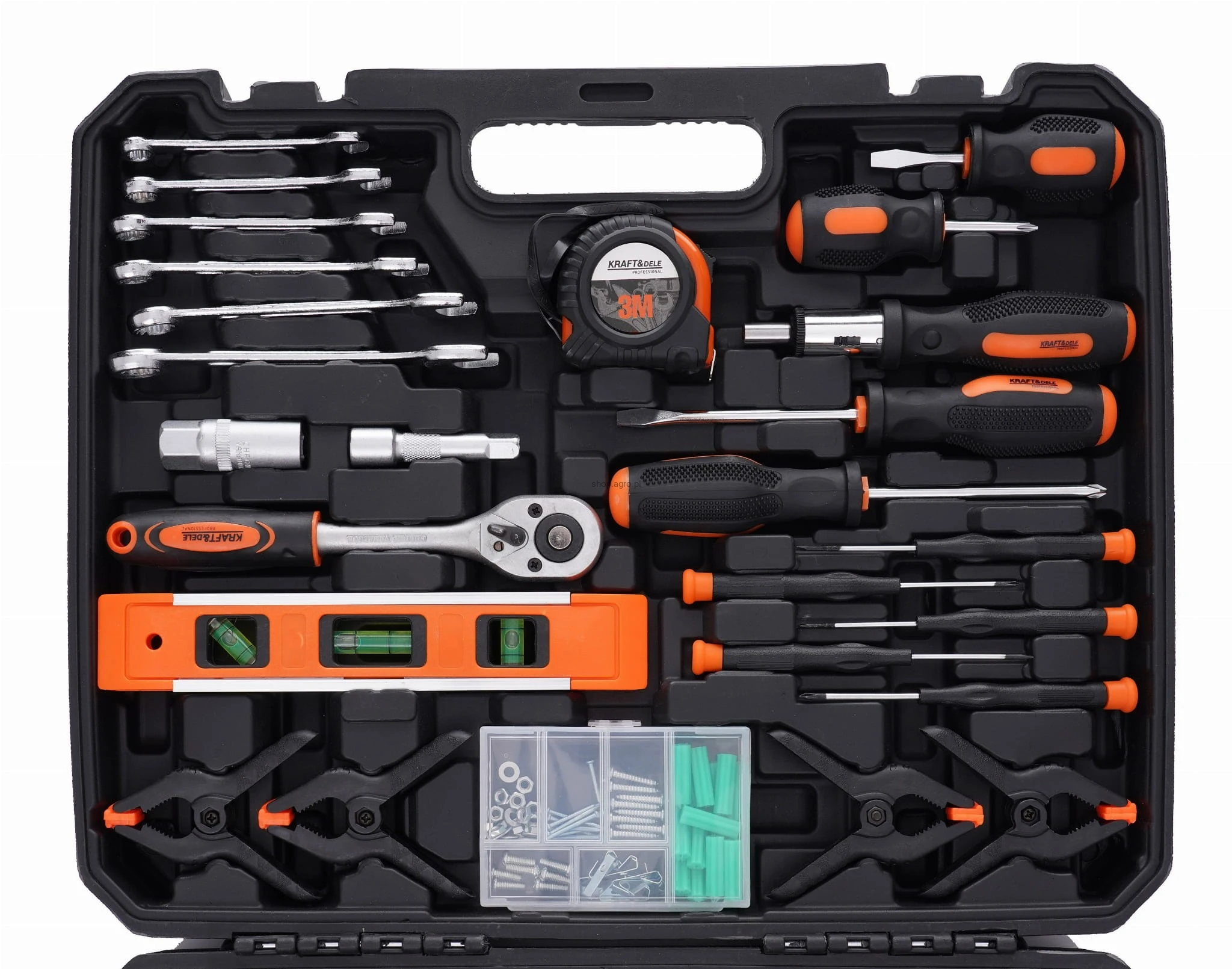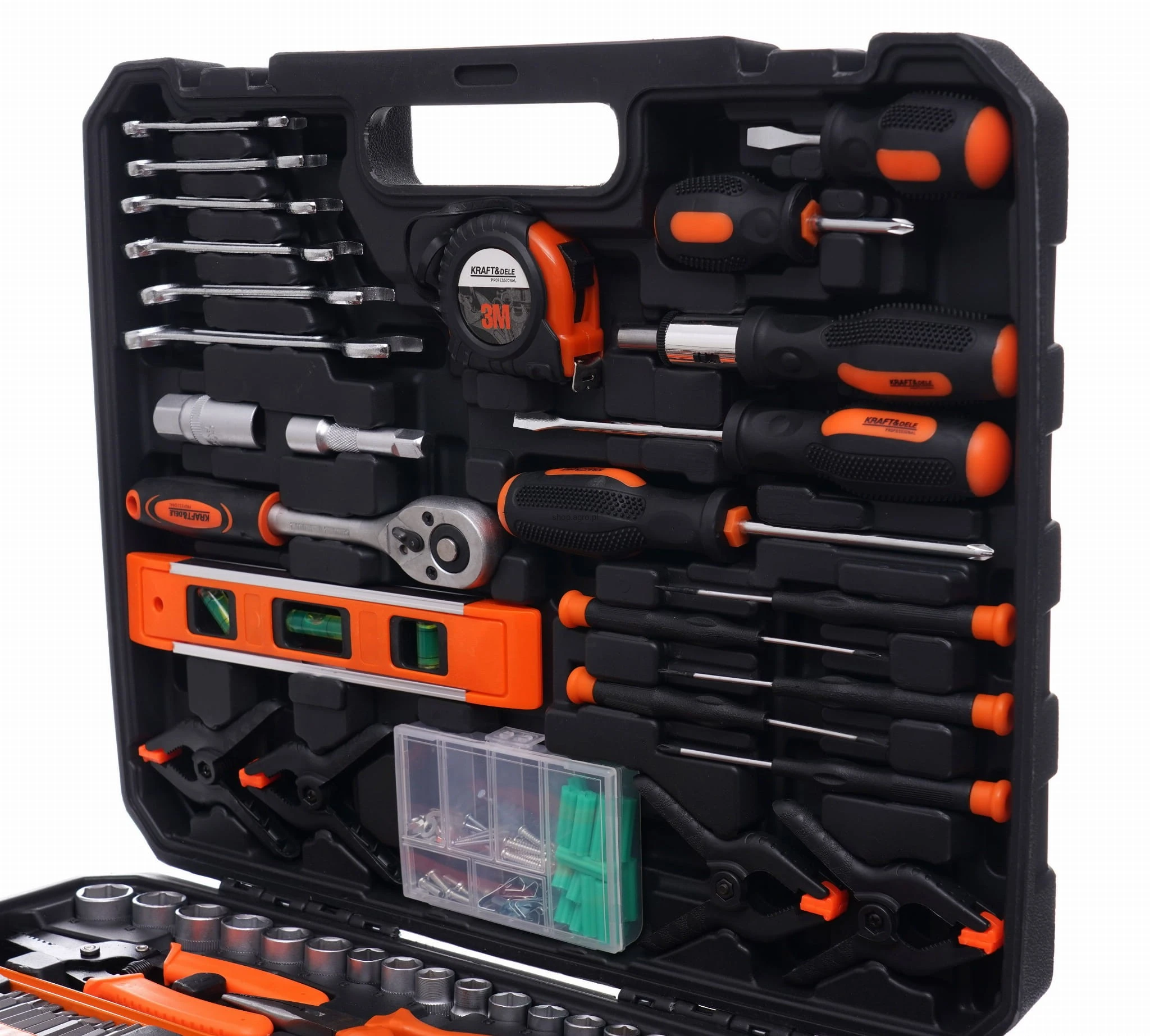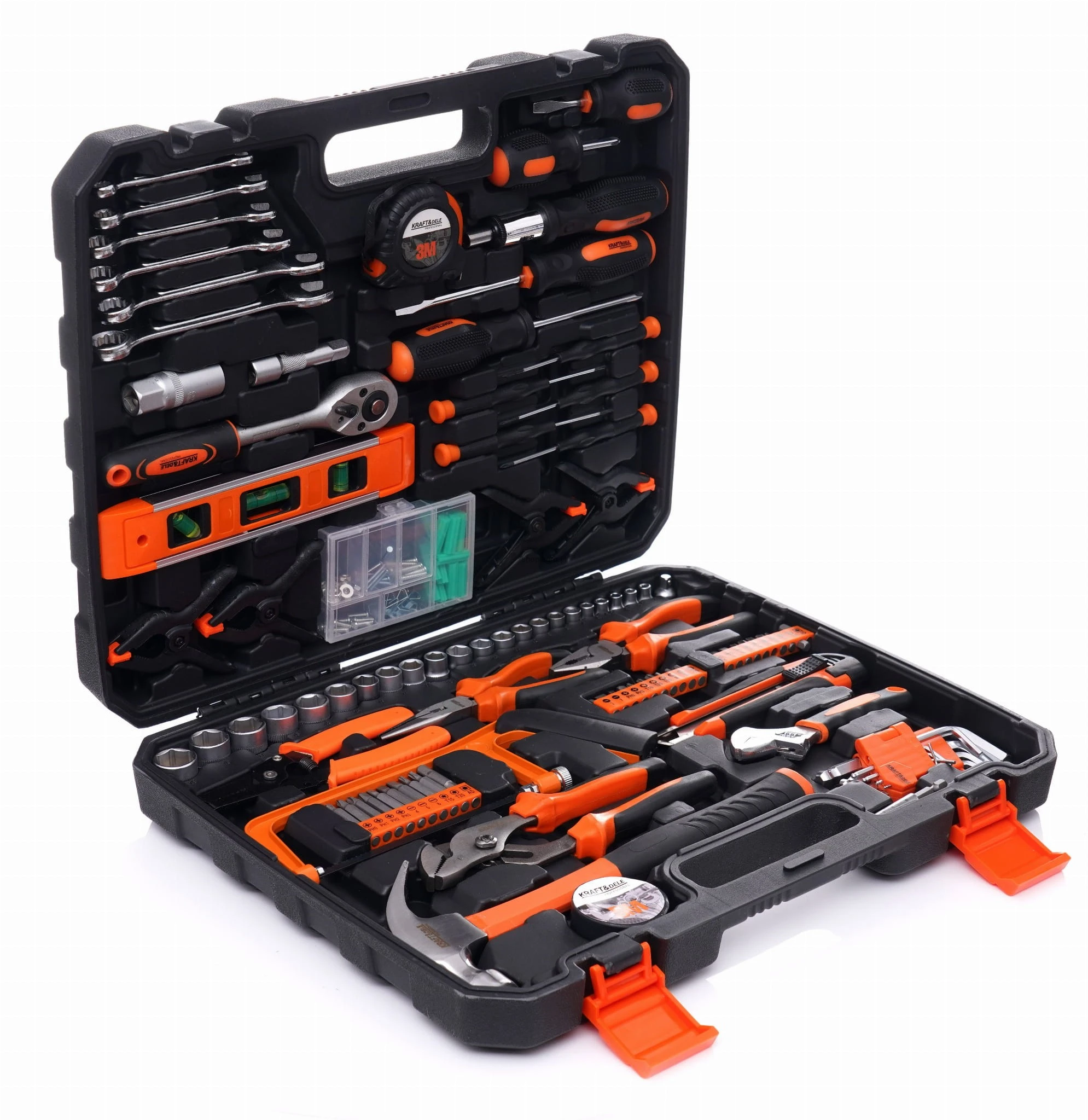 Niezwykle rozbudowany zestaw narzędzi marki Kraft&Dele o symbolu KD10837. Narzędzia cechuje solidne wykonanie, wytrzymałe materiały oraz poręczna walizka, w której każde narzędzie ma swoje miejsce.